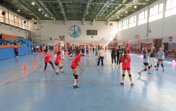 Η αυλαία της αγωνιστικής γιορτής άνοιξε με τους προκριματικούς αγώνες βόλεϊ κοριτσιών δημοτικών σχολείων και συνεχίζονται με τους τελικούς αγώνες κατάταξης.