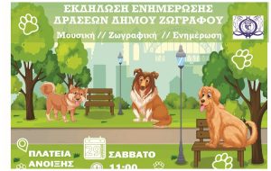 Η ενημέρωση και η ευαισθητοποίηση των πολιτών στο πρόβλημα των ακαθαρσιών των σκυλιών είναι το θέμα της εκδήλωσης που διοργανώνει ο Δήμος Ζωγράφου, σε συνεργασία με το NO KAKA, το Σάββατο 29 Απριλίου στην πλατεία Άνοιξης.