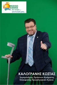 Επικεφαλής του Πράσινου Κινήματος, στις επερχόμενες εκλογές είναι ο συμπρόεδρος Κώστας Καλογράνης, καθηγητής δημοσιογραφίας και Επικοινωνιολόγος. Ο κ. Καλογράνης, είναι παράλληλα, ο μοναδικός επικεφαλής κόμματος, στις επικείμενες εθνικές εκλογές, που είναι άτομο με κινητικά προβλήματα. Μαζί με το Πράσινο Κίνημα, συστρατεύονται στα ψηφοδέλτια και οι Ελεύθεροι Πολίτες, διευρύνοντας έτσι την πλατιά κοινωνική και δημοκρατική συμμαχία που έχει δημιουργηθεί.