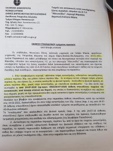 «Στην αναφερόμενη περιοχή, υφίσταται τοίχος αντιστήριξης οπλισμένου σκυροδέματος, μήκους περίπου 30μ. και μέσου ύψους περίπου 10μ.. Σε συνέχεια αυτού, υπάρχει τοίχος μήκους περίπου 4μ. και ύψους 1μ., ο οποίος ακολουθεί το φυσικό πρανές. Ακολουθεί το φυσικό πρανές, σε μήκος περίπου 40μ., χωρίς τοίχο αντιστήριξης, με επικίνδυνα κουφώματα. Για όλα αυτά είχε συνταχθεί η από 24.7.2018 έκθεση επικινδύνου τοιχίου και κατασκευών, από άποψη στατική και δομική, της οποίας οι διαπιστώσεις συνεχίζουν να ισχύουν έως σήμερα, χωρίς να έχει πραγματοποιηθεί καμία κατασκευή έργου αντιστήριξης ή ενίσχυσης και αποκατάστασης της επικινδυνότητας».
