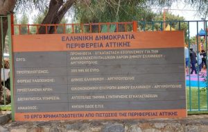 Η παιδική χαρά, με την χρηματοδότηση της Περιφέρειας Αττικής, παραδόθηκε βάση της σχετικής προγραμματικής σύμβασης που υπογράφηκε από τον περιφερειάρχη Αττικής Γιώργος Πατούλη και τον δήμαρχο Γιάννη Κωνσταντάτο.