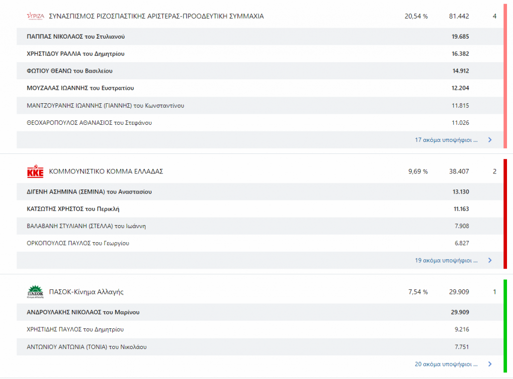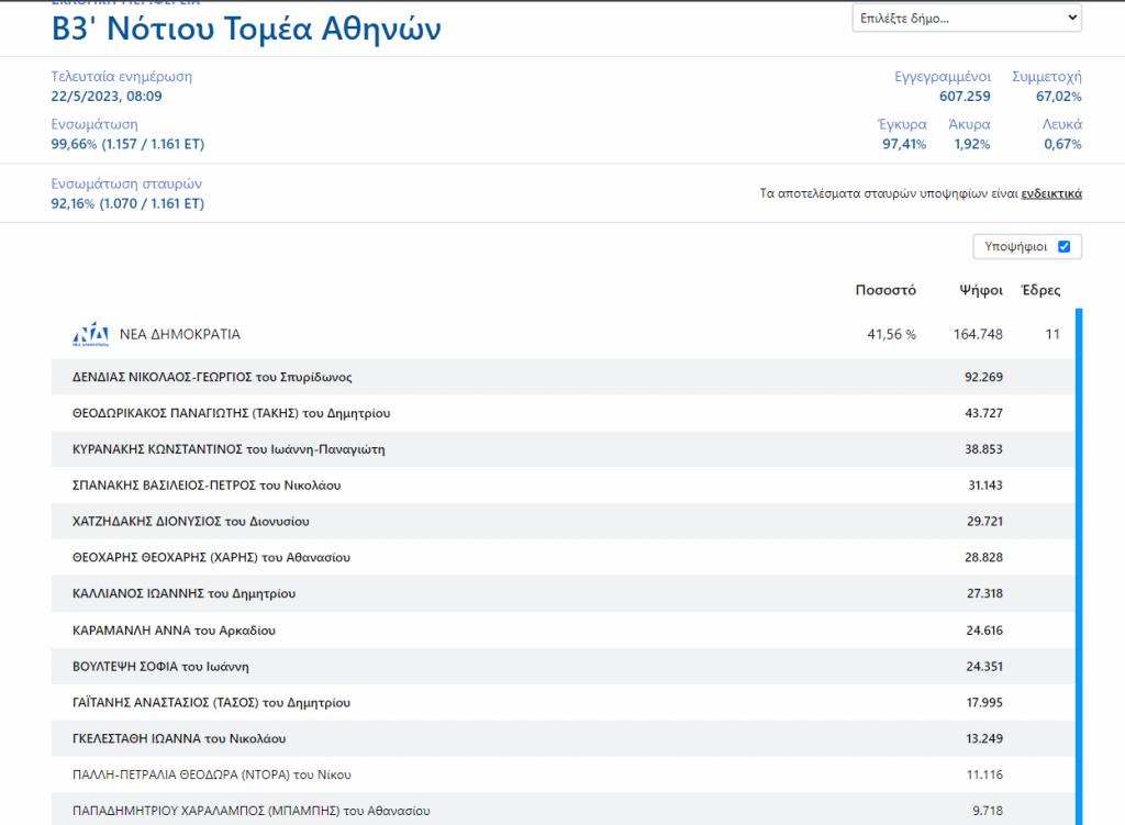 Δείτε ποιοι εκλέγονται στο Νότιο Τομέα Αθηνών (Β3) σε κάθε κόμμα: