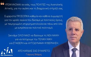 ΥΠΟΚΛΙΝΟΜΑΙ στους ΠΟΛΙΤΕΣ της Ανατολικής Αττικής για την αγάπη και τη διαχρονική στήριξή τους.
