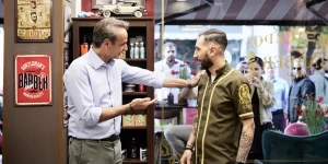 Ο Κ. Μητσοτάκης μπήκε σε ένα κουρείο το οποίο είχε επισκεφθεί και σε παλαιότερη επίσκεψή του. «Είχα ξαναπεράσει από εδώ. Δεν ξέρω αν το θυμάστε», είπε ο πρόεδρος της ΝΔ, σημειώνοντας ότι η Νέα Δημοκρατίας θα πάρει την αυτοδυναμία. «Είναι γουρλίδικο το μαγαζί», του είπε ένας εκ των πελατών με τον κ. Μητσοτάκη να αποκρίνεται, «το ξέρω».