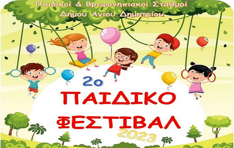 Κέφι, χαρά, διαδραστικά παιχνίδια, δημιουργικές δραστηριότητες και πολλές εκπλήξεις περιμένουν όλα τα παιδιά των Παιδικών και Βρεφονηπιακών Σταθμών του Δήμου Αγίου Δημητρίου, στο 2ο Παιδικό Φεστιβάλ, που διοργανώνει ο Οργανισμός Παιδείας Κοινωνικής Αλληλεγγύης και Προστασίας, την Τετάρτη 31 Μαΐου 2023 και ώρα 18:30, στο Πάρκο Κυκλοφοριακής Αγωγής Ασυρμάτου, για να σηματοδοτήσει το κλείσιμο μιας δημιουργικής χρονιάς.