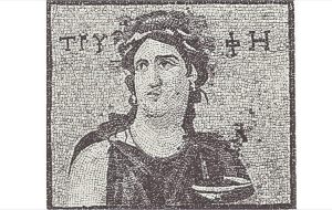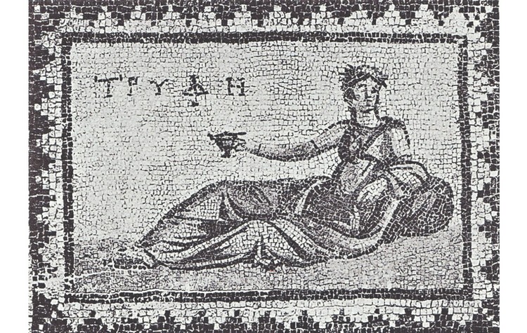 Θα περιορίσω την αναζήτηση προσώρας στο πεδίο των ψηφιδωτών δαπέδων από την Αντιόχεια. Επιλέγω τρία ψηφιδωτά δάπεδα: 1) στο πρώτο είναι ψηφοθετημένη η επιγραφή «ΤΡΥΦΗ». Παριστάνεται ανακεκλιμένη γυναίκα να κρατεί αγγείο. Παρατίθεται πλησίον άλλου ψηφιδωτού δαπέδου στο οποίο είναι ψηθοθετημένη επιγραφή «Ο BIOC». Το ψηφιδωτό αυτό προέρχεται από την «οικία του κωμάζοντας Διονύσου» στα περίχωρα της Αντιόχειας και χρονολογούνται τον 4ο αι. μ.Χ. (Doro Levi, Antioch Mosaic Pavements, I-II, Princeton 1947, πιν. LI[b]. (πιν.1) Βλ. και Αθανασιάδη Πολύμνια, Ιουλιανός.