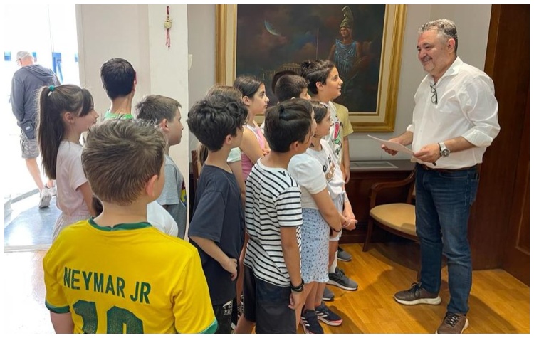 Συγκεκριμένα, οι μαθητές της Τετάρτης Δημοτικού του Δ2 Τμήματος του Σχολείου επισκέφθηκαν στο γραφείο του τον Βασίλη Θώδα, στον οποίο συνοδευόμενα από τη δασκάλα τους Αγγελική Νικολάου, παρέδωσαν επιστολή με την οποία του ζητούν να διευκολύνει τις διαδικασίες και να μεριμνήσει, ώστε ένα οικόπεδο που συνορεύει με το σχολείο τους, να μπορέσουν να το μετατρέψουν σε κήπο.