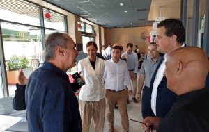 Με την σειρά του ο κ. Ιωακειμίδης αφού ευχήθηκε καλή αρχή και κάθε επιτυχία στους υπεύθυνους και την διοίκηση του καταστήματο,ς ξεναγήθηκε στον προαύλιο χώρο αναψυχής που δημιουργήθηκε και ενημερώθηκε από τους υπεύθυνους για την πρόοδο της δεντροφύτευσης με ελιές που βρίσκεται εν εξελίξει. Τέλος ξεναγήθηκε και στον ειδικά διαμορφωμένο για την ασφάλεια των παιδιών παιδότοπο που κατασκεύασε η εταιρεία.