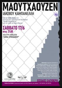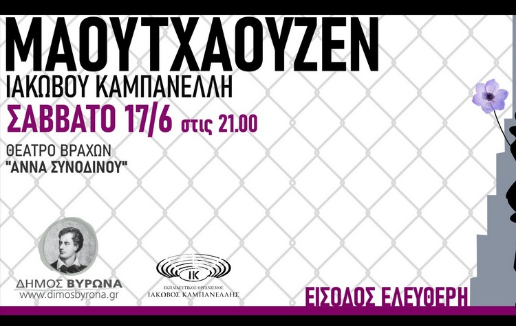 Η εμβληματική παράσταση “Μαουτχάουζεν” του Ιάκωβου Καμπανέλλη θα παρουσιαστεί το Σάββατο 17 Ιουνίου, ώρα 21.00, στο Θέατρο Βράχων “Άννα Συνοδινού”, είναι μία παραγωγή του Καλλιτεχνικού Εκπαιδευτικού Οργανισμού Ιάκωβος Καμπανέλλης και του Δήμου Βύρωνα. Η είσοδος για το κοινό είναι ελεύθερη.