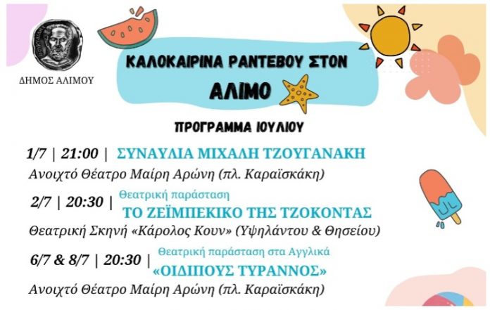 Διαβάστε επίσης: Θεατρικές παραστάσεις και συναυλίες για όλο το καλοκαίρι στον Άλιμο