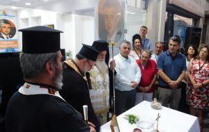 Ο αγιασμός των εγκαινίων στο εκλογικό κέντρο τον πραγματοποιήθηκε από τον θεοφιλέστατο επίσκοπο Ρωγών Φιλόθεο – βοηθός επίσκοπος της Ιεράς Αρχιεπισκοπής Αθηνών, τον προϊστάμενο του Ι.Ν. Αγίας Μαρίνας Ηλιουπόλεως πανοσιολογιότατο αρχιμανδρίτη Σεραφείμ Δημητρίου και τον ενορίτη πρωτοπρεσβύτερο Παναγιώτη Κούκουνα του Ι.Ν. Αγίου Νικολάου Ηλιουπόλεως.
