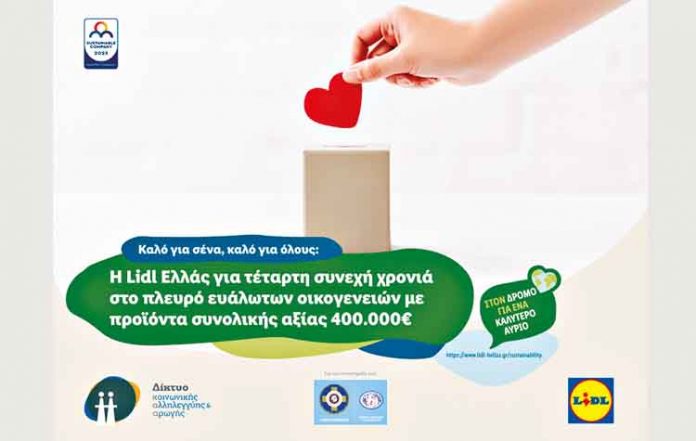 Τη συνέχιση της πρωτοβουλίας «Συνέργεια Προσφοράς και Αγάπης» ανακοίνωσε η Lidl Ελλάς, διευρύνοντας τη συνεργασία της με το Δίκτυο Κοινωνικής Αλληλεγγύης & Αρωγής (Δίκτυο) και το Κέντρο Υποδοχής & Αλληλεγγύης Δήμου Αθηναίων (ΚΥΑΔΑ) για ακόμη μια χρονιά. Με την ολοκλήρωση της φετινής συνεργασίας, η Lidl Ελλάς θα έχει προσφέρει συνολικά προϊόντα αξίας 400.000 € για τη στήριξη των οικογενειών που έχουν πραγματικά ανάγκη.