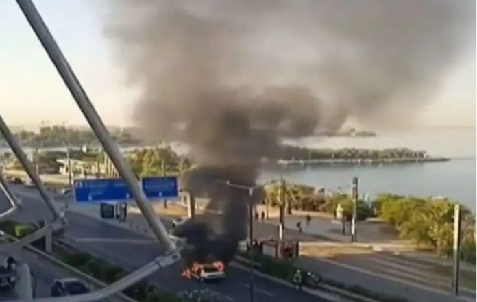 Μποτιλιάρισμα σημειώθηκε νωρίτερα τη Δευτέρα στην κάθοδο της παραλιακής, στο ύψος του Αλίμου, όταν αυτοκίνητο πήρε φωτιά.