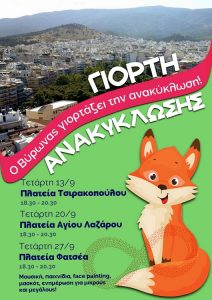 Ο Δήμος διοργανώνει γιορτές ανακύκλωσης μετά μουσικής, παιχνιδιών, face painting, μασκότ, ενημέρωση για μικρούς και μεγάλους.
