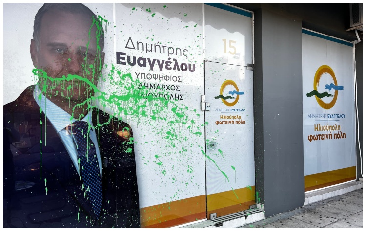 Άγνωστοι παραμένουν ακόμη οι δράστες της επίθεσης με μπογιές στο προεκλογικό κέντρο του υποψηφίου δημάρχου και επικεφαλής της παράταξης «Ηλιούπολη Φωτεινή Πόλη», Δημήτρη Ευαγγέλου στην περιοχή της Αγίας Μαρίνας.