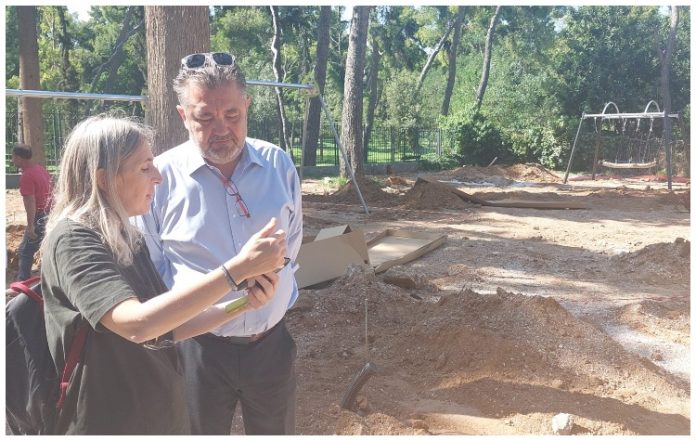 Την παιδική χαρά επισκέφθηκε και ο δήμαρχος της πόλης Βασίλης Θώδας που είδε από κοντά τις εργασίες που γίνονται.