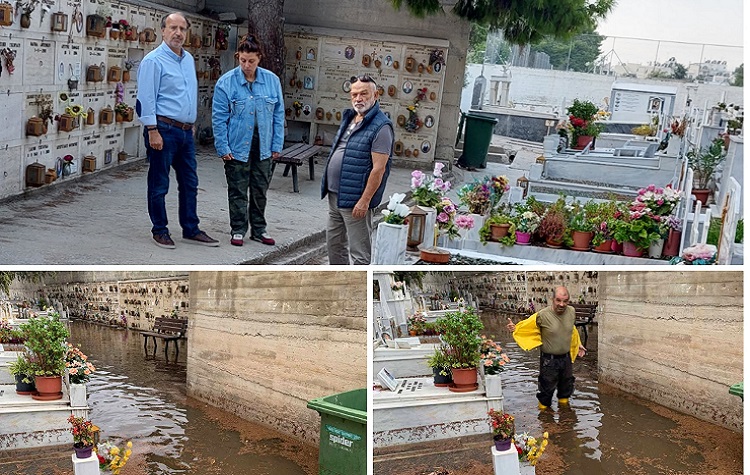 Προ ημερών επισκέφθηκε το Κοιμητήριο Νέας Σμύρνης, στην πίσω πλευρά του οποίου σχηματίζεται αληθινή λίμνη κάθε φορά που ρίχνει έντονη βροχή.