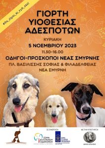 Γιορτή υιοθεσίας για τα αδέσποτα ζωάκια θα πραγματοποιηθεί την Κυριακή 5 Οκτωβρίου από τις 11.30πμ έως τις 4μμ στους Οδηγούς – Προσκόπους Νέας Σμύρνης (Πλ. Βασιλίσσης Σοφίας και Φιλαδελφείας).
