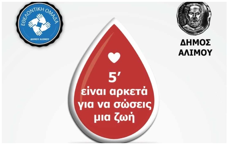 Τη συμμετοχή των πολιτών, που είναι σε θέση να προσφέρουν αίμα, στην εθελοντική αιμοδοσία που θα πραγματοποιηθεί την Παρασκευή, 17 Νοεμβρίου, ζητεί η δημοτική Αρχή Αλίμου.