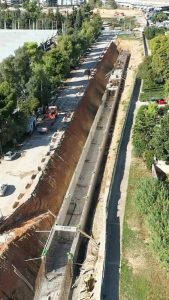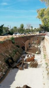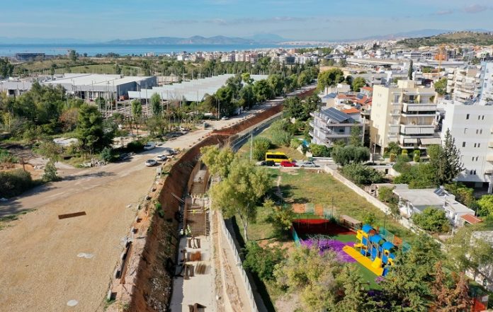Το μεγαλύτερο αντιπλημμυρικό έργο προστασίας που έπρεπε εδώ και δεκαετίες να είχε γίνει στη Νότια Αθήνα, πραγματοποιείται σήμερα, στην περιοχή της Αγίας Παρασκευής στο Ελληνικό, μέσα στο αεροδρόμιο και αφορά τη διευθέτηση του ρέματος Τραχώνων.