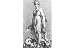 Η πρόθεσή μου δεν είναι να υποκαταστήσω την εικονογράφο, θα ήθελα ωστόσο να μού επιτραπεί να προτείνω για την εικονογράφηση της στροφής 90 και κυρίως για τους δύο πρώτους στίχους παλαιά λιθογραφία αγνώστου στην οποία εικονίζονται ο Κοραής και ο Ρήγας να ανασηκώνουν την Ελλάδα. Αλληγορική παράσταση που υποδηλώνει την αναγέννηση της υποδουλωμένης πατρίδος 10 (εικ. 7).