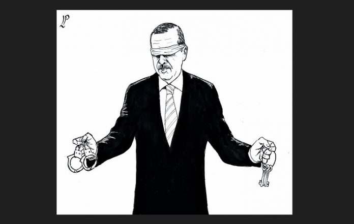 Στη σημερινή Τουρκία η πραγματική Δικαιοσύνη, το ύψιστο αγαθό που δεν ασκείται για ίδιον όφελος ή για την ευδαιμονία όποιου την ασκεί, αλλά προς χάριν τρίτου, έχοντας την πηγή της μέσα στην ανιδιοτέλεια και στην ελευθερία της ψυχής, έχει μετατραπεί εδώ και πολλά χρόνια σε ένα απλό εργαλείο στα χέρια του «Απατεώνα Δικτάτορα» της γειτονικής χώρας, προκειμένου να φιμώνει, να παραδειγματίζει ή να τιμωρεί όσους θεωρεί αντιπάλους ή όσους του ασκούν ενοχλητική κριτική.