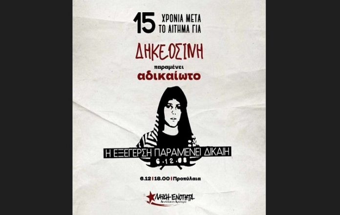 15 χρόνια μετά, οι αγώνες ενάντια στην καταστολή, τον επικίνδυνο αυταρχισμό, αλλά και ενάντια στις πολιτικές που στερούν την αξιοπρέπεια από τους εργαζόμενους και το μέλλον από τη νεολαία είναι πιο αναγκαίοι από ποτέ. Για να σπάσουν το αίσθημα της παντοδυναμίας και του ανεξέλεγκτου της ασύδοτης κυβέρνησης, για να διεκδικήσουν ζωή με δικαιώματα και ελευθερίες, να διεκδικήσουν δικαιοσύνη.
