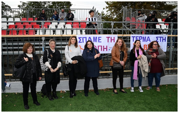 Επίσης, πραγματοποιήθηκε στο Δημοτικό Γήπεδο Ποδοσφαίρου Μοσχάτου φιλικός αγώνας μεταξύ των γυναικείων ποδοσφαιρικών ομάδων ΟΔΥΣΣΕΑΣ Μοσχάτου και ΑΕΚ με στόχο τη μετάδοση του μηνύματος της Εξάλειψης της Βίας κατά των Γυναικών.