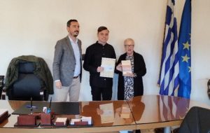 Η Καλλιόπη Βγόντζα, σύζυγος του εκλιπόντος, συγκινημένη παρέδωσε στον αριστούχο το βιβλίο «… ανάμεσα στη μικρή και μεγάλη ιστορία…», του Αντώνη Ν. Βγόντζα, ένα πολύτιμο αυτοβιογραφικό πόνημα με σημαντικές αναφορές στον Υμηττό, όπου γεννήθηκε.