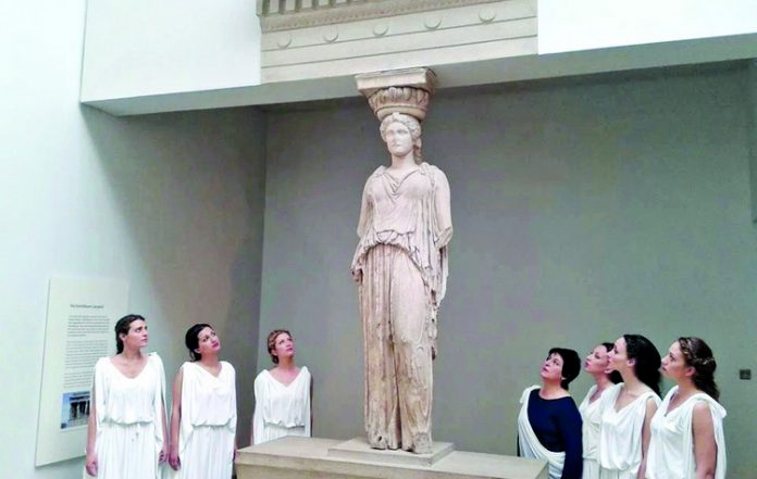 Η Ελληνίδα σοπράνο Σόνια Θεοδωρίδου, συνοδευόμενη από έξι σύγχρονες Ελληνίδες Καρυάτιδες, ντυμένες με αρχαιοελληνικά φορέματα, μπήκαν στο Βρετανικό Μουσείο για να συναντήσουν την αρπαγμένη από τον Λόρδο Έλγιν Καρυάτιδα του Ερεχθείου της Ακρόπολης των Αθηνών.