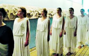 Η σοπράνο Σόνια Θεοδωρίδου συνοδευόμενη από έξι πανέμορφες Ελληνίδες ντυμένες στα λευκά, ως άλλες Καρυάτιδες, μπήκαν στο Βρετανικό Mουσείο αναζητώντας τη χαμένη «αδερφή τους», προκαλώντας το ενδιαφέρον τόσο των τουριστών αλλά και όσων επισκέπτονταν εκείνη την ώρα το Mουσείο.