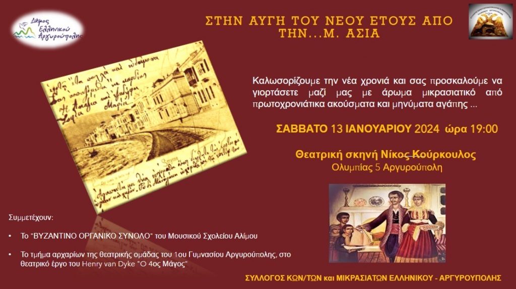 Εκδήλωση από τον Σύλλογο Κωνσταντινουπολιτών και Μικρασιατών Ελληνικού Αργυρούπολης το Σάββατο 13/1
