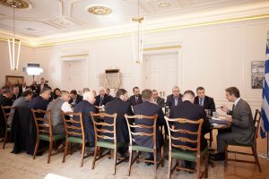 Με τους 13 περιφερειάρχες της χώρας συναντήθηκε στο Μέγαρο Μαξίμου την Πέμπτη 8 Φεβρουαρίου ο πρωθυπουργός Κυριάκος Μητσοτάκης, με αντικείμενο την προώθηση των Περιφερειακών Σχεδίων Ανάπτυξης και το συντονισμό μεταξύ κυβέρνησης και Περιφερειών.