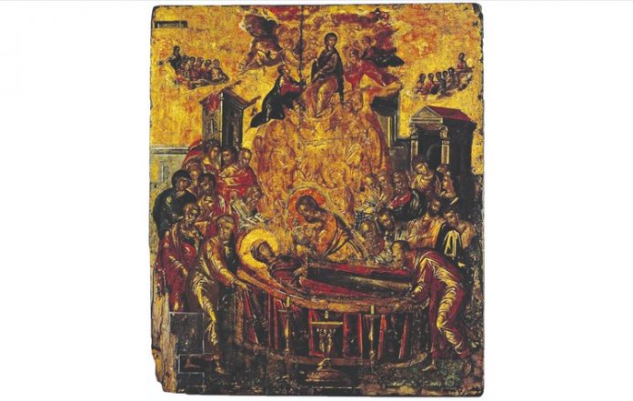 Η δική μου ερμηνευτική δοκιμή συσχετίζει τις εκτιμήσεις του Γ. Σεφέρη που αφορούν το νόημα της ακατάληπτης λαλιάς του Θεοτοκόπουλου για όλους με το «δείξας» της υπογραφής του στην εικόνα της Κοιμήσεως της Θεοτόκου (Εικ.1).