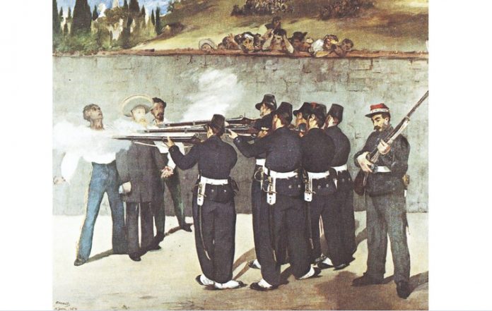Στην κατηγορία αυτή ανήκει το έργο με τίτλο: «Η εκτέλεση του αυτοκράτορα Μαξιμιλιανού» (1867), φιλοτεχνημένο από τον Γάλλο ζωγράφο Εντουάρ Μανέ (Εικ.1). Ο πίνακας είναι εμπνευσμένος από ένα σοβαρότατο γεγονός της εποχής: τον τυφεκισμό του Μαξιμιλιανού της Αυστρίας από τους εξεγερμένους Μεξικανούς, υπό την ηγεσία του Μενίτο Χουάρεζ. Με την ελπίδα να καταστείλουν τις αυτονομιστικές τάσεις στο Μεξικό, η Γαλλία, η Αγγλία και η Ισπανία, αποφασίζουν να προτείνουν στον αρχιδούκα Μαξιμιλιανό, που ήταν υποχείριό τους, τη διακυβέρνηση της χώρας. Η εκστρατεία αποδεικνύεται καταστροφική. Ο Ναπολέων Γ’, ανίκανος να ελέγξει την κατάσταση, αποσύρει τα στρατεύματα και εγκαταλείπει τον Μαξιμιλιανό στα χέρια των εξεγερμένων Μεξικανών. Πολλοί σύγχρονοί του τον κατηγόρησαν γι’ αυτήν την προδοσία.