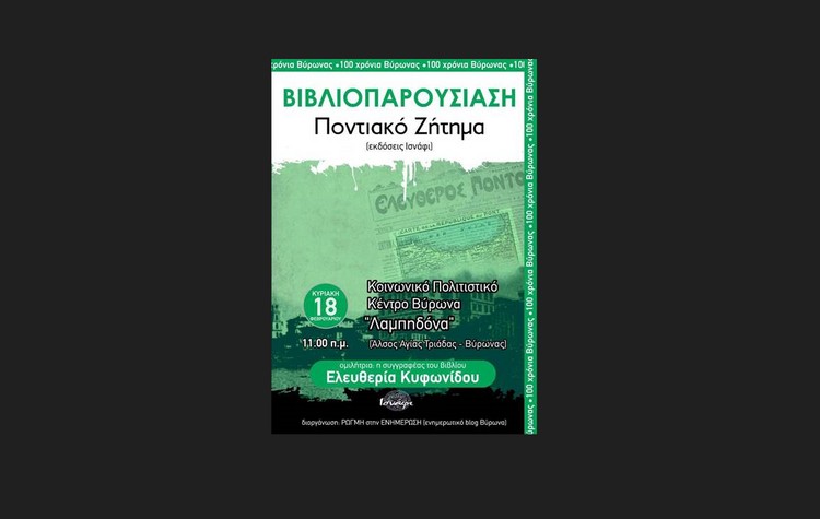 Στην εκδήλωση η συγγραφέας Κυφωνίδου Ελευθερία θα παρουσιάσει το βιβλίο της με τίτλο «Ποντιακό Ζήτημα, Στρατηγικές επιλογές και αδιέξοδα, 1917-1922».