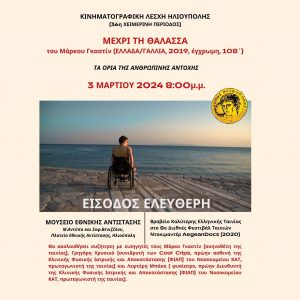 Με την βραβευμένη ταινία – ντοκιμαντέρ “Μέχρι τη θάλασσα” του Μάρκο Γκαστίν (ΕΛΛΑΔΑ/ΓΑΛΛΙΑ, 2019, έγχρωμη, 108΄) συνεχίζονται την Κυριακή 3/3/2024, 8:00 μμ, στο Μουσείο Εθνικής Αντίστασης Ηλιούπολης (Μαρ. Αντύπα 134 και Σοφ. Βενιζέλου 100) οι προβολές της Κινηματογραφικής Λέσχης Ηλιούπολης.