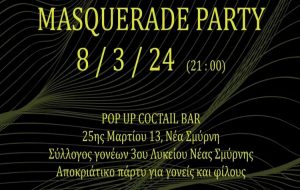 Ball maske για… μεγάλους διοργανώνει ο Σύλλογος Γονέων του 3ου Λυκείου Νέας Σμύρνης σε μπαρ της κεντρικής πλατείας, απόψε, στις 9μμ.