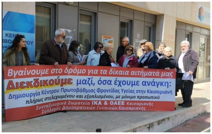 Το ενδιαφέρον των κατοίκων της Καισαριανής συγκέντρωσε η εκδήλωση που συνδιοργάνωσαν στον Δήμο τα Συνταξιουχικά Σωματεία ΙΚΑ & ΟΑΕΕ της πόλης μαζί με το Σύλλογο Δημοκρατικών Γυναικών Καισαριανής με θέμα: «Εξελίξεις στο χώρο της Υγείας. Καλύπτονται οι ανάγκες μας για σύγχρονο, ποιοτικό, αποκλειστικά δημόσιο και δωρεάν σύστημα Υγείας;».