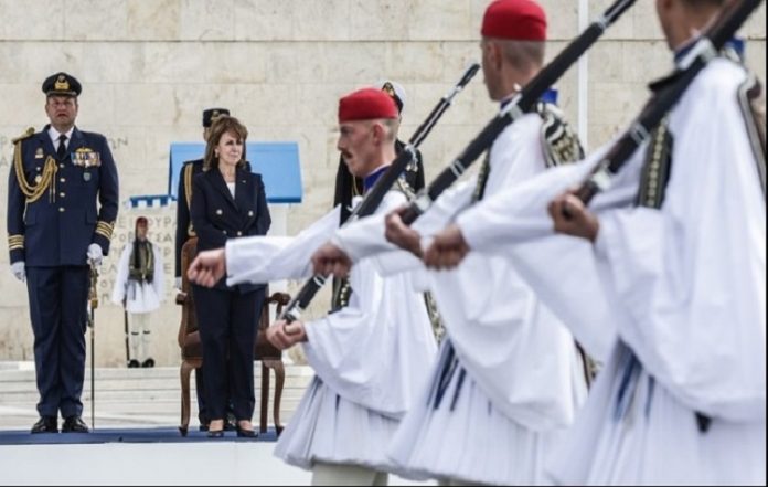 Η Πρόεδρος της Δημοκρατίας Κατερίνα Σακελλαροπούλου συνεχάρη τον έχοντα το Γενικό Πρόσταγμα διοικητή της Στρατιωτικής Σχολής Ευελπίδων Υποστράτηγο Αναστάσιο Πολύχρονο για το άρτιο της παρέλασης.