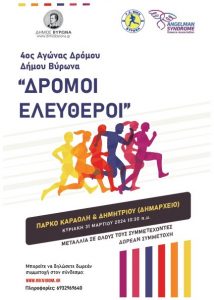 Για 4η φορά ο Δήμος Βύρωνα, σε συνεργασία με τον Γυμναστικό Σύλλογο Νίκη Βύρωνα, διοργανώνει την Κυριακή 31 Μαρτίου τον αγώνα «ΔΡΟΜΟΙ ΕΛΕΥΘΕΡΟΙ».
