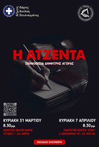 Το θεατρικό έργο «Η Ατζέντα» ανεβάζει ο Δήμος Βάρης Βούλας Βουλιαγμένης σε συνεργασία με τον Πολιτιστικό και Περιβαλλοντικό Σύλλογο «Τριλογία». Πρόκειται για θεατρική διασκευή της ιταλικής κινηματογραφικής ταινίας «The Place», του Paolo Genovese.