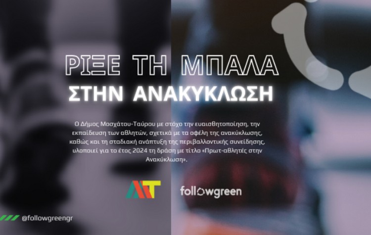 Ο Δήμος Μοσχάτου-Ταύρου με στόχο την ευαισθητοποίηση, την εκπαίδευση των αθλητών, σχετικά με τα οφέλη της ανακύκλωσης, καθώς και τη σταδιακή ανάπτυξη της περιβαλλοντικής συνείδησης ενεργοποιεί για το έτος 2024 τη δράση με τίτλο «Πρωτ-αθλητές στην Ανακύκλωση».