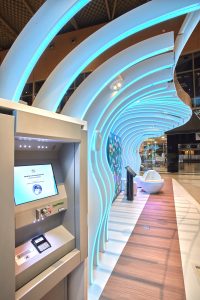 Ο σύγχρονος, minimal αρχιτεκτονικός σχεδιασμός του νέου Pop Up store, με κύριο χαρακτηριστικό το σχήμα του, που προσομοιάζει σε ηλεκτρομαγνητικά κύματα και μεταφέρει σε όλο το περιβάλλον χρώμα και φως, δημιουργεί έναν ανοιχτό και φιλόξενο για όλους χώρο, μέσα στο The Mall Athens.