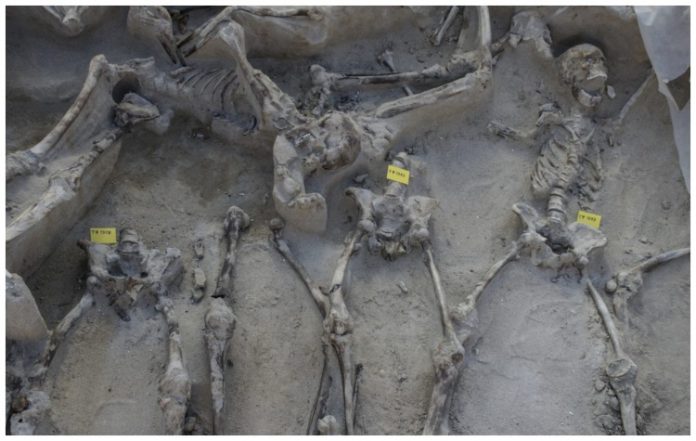 Πρόκειται για τους 78 ανθρώπινους σκελετούς, ηλικίας σχεδόν τριών χιλιάδων ετών που βρέθηκαν από τους αρχαιολόγους αλυσοδεμένοι κατά ομάδες