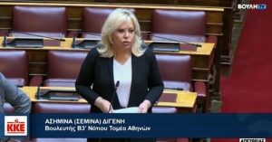 «Είναι προκλητικό», τόνισε η βουλευτής του ΚΚΕ, «οι Δημοτικές Αρχές να συναινούν με τις πολιτικές των κυβερνήσεων, που μετακυλούν αρμοδιότητες του κράτους προς τους Δήμους και την ίδια στιγμή περικόπτουν την κρατική χρηματοδότηση. Είναι απαράδεκτο να δεσμεύουν για διδασκαλία προβληματικές αίθουσες, να εγκαθιστούν κοντέινερ σε προαύλιους χώρους, να μετακινούνται παιδιά σε άλλα σχολεία μακριά από τον τόπο διαμονής τους και τόσες άλλες παρόμοιες αντιπαιδαγωγικές πρακτικές. Όταν δεν διεκδικούν από τις κυβερνήσεις κονδύλια για απαλλοτριώσεις οικοπέδων με σκοπό την ανέγερση νέων σχολείων. Είναι εξοργιστικό μέσα σε μία νύχτα δεκάδες εργοστάσια και ελεύθεροι χώροι να μετατρέπονται σε super market μεγάλων αλυσίδων και να αποχαρακτηρίζονται από χώρους για ανέγερση σχολείων δεκάδες στρέμματα. Οι ευθύνες της κυβέρνησης και των αρμόδιων φορέων για την απουσία ολοκληρωμένων μελετών και ανέγερση σύγχρονων σχολικών μονάδων σε όλες τις βαθμίδες εκπαίδευσης είναι μεγάλες και οι πρακτικές σας εγκυμονούν κινδύνους.