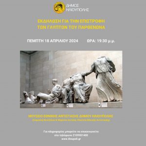Με αφορμή την Παγκόσμια Ημέρα Μνημείων και Τοποθεσιών, επίσης γνωστή ως Παγκόσμια Ημέρα Κληρονομιάς, ο Δήμος Ηλιούπολης οργανώνει εκδήλωση την Πέμπτη 18 Απριλίου 2024, ώρα 19:30 στο Μουσείο Εθνικής Αντίστασης Δήμου Ηλιούπολης (Σοφοκλή Βενιζέλου & Μαρίνου Αντύπα, Πλατεία Εθνικής Αντίστασης, Ηλιούπολη) με παρουσίαση του θεατρικού μονόπρακτου «Greece I’m coming home»: «Ελλάδα, έρχομαι σπίτι» σε σκηνοθεσία του Ηλιουπολίτη κ. Χρήστου Αρφάνη.