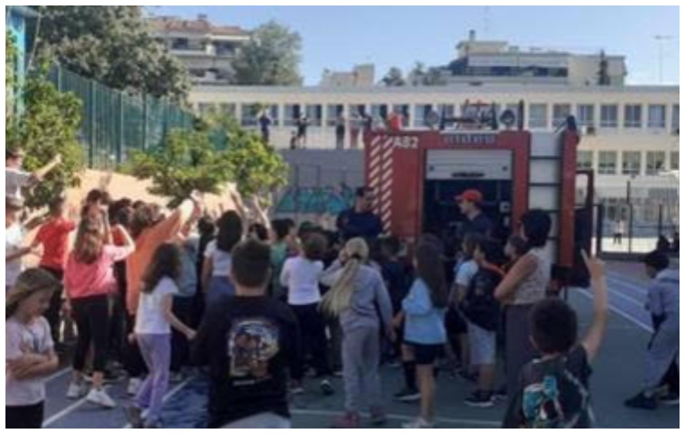 Επίσης μέσω βιωματικής δράσης οι μαθητές κατανοούν καλύτερα το μάθημα διασκεδάζοντας. Παράλληλα, πραγματοποιείται, παρουσίαση του Πυροσβεστικού οχήματος και του τρόπου λειτουργίας του, αναπτύσσοντας Πυροσβεστική Παιδεία.