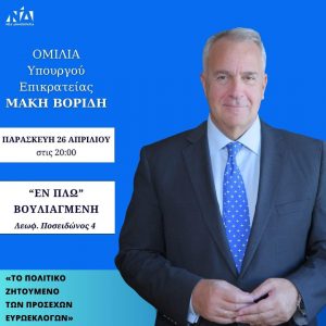 Ο κ. Βορίδης θα πραγματοποιήσει ομιλία στο γνωστό στέκι της παραλιακής με θέμα «Το πολιτικό ζητούμενο των προσεχών Ευρωεκλογών».
