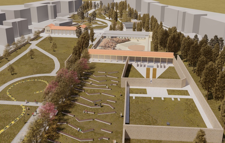 Η αρχιτεκτονική μελέτη βασίζεται στην υφιστάμενη προμελέτη που εκπονήθηκε από την Τεχνική Υπηρεσία του Δήμου και στην πολλαπλότητα των χρήσεων και των απαιτήσεων που δημιουργούνται, ώστε να απαντά στα σύγχρονα δεδομένα και τις ανάγκες της εποχής και της πόλης.